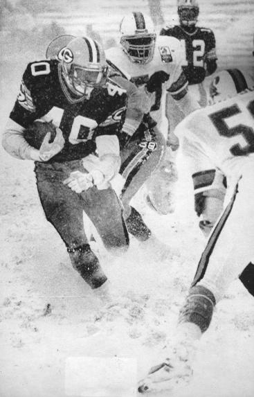 It was the biggest blizzard in the Packers' history (10.7 inches of snow by game's end, with winds swirling at 20 to 30 mph and the wind chill dipping to minus-7). It was the smallest crowd ever at Lambeau Field (19,856 showed up; 36,586 did not). It was Steve Young's first game ever at Lambeau (8-17, 53 yards, 1 interception). And it was no contest: Green Bay beat Tampa Bay, 21-0, and out-gained them in yards, 512-65.
